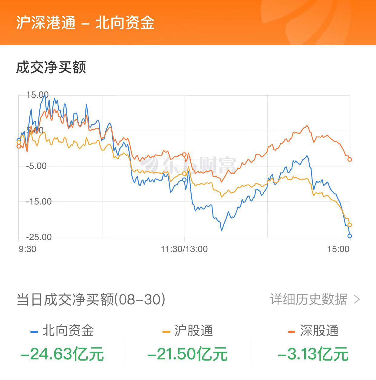 北向资金净流出24.63亿元