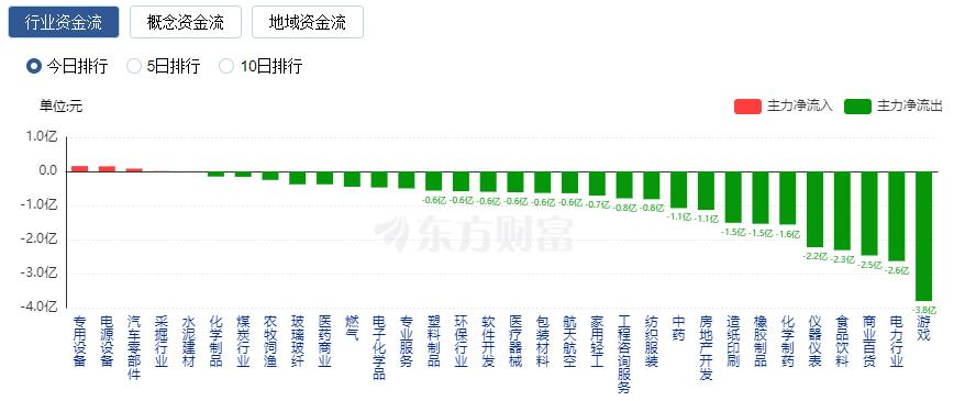 净流出方面,游戏、电力行业、商业百货等净流出排名靠前,其中游戏净流出3.81亿元。