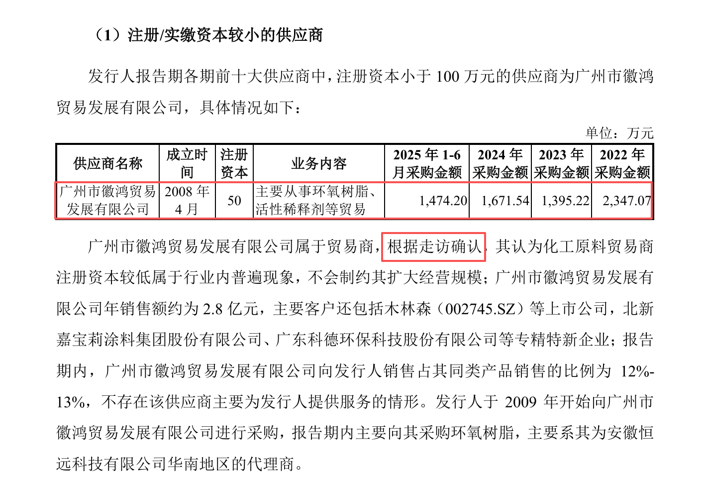 针对监管疑问,慧谷新材回复称:广州市徽鸿贸易发展有限公司属于化工原料贸易商,经走访确认,化工原料贸易行业内注册资本较低的情况较为普遍,这一因素并不会制约该公司扩大经营规模;同时提及,广州市徽鸿贸易发展有限公司的年销售额约为 2.8 亿元...