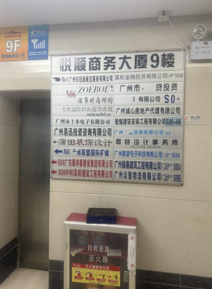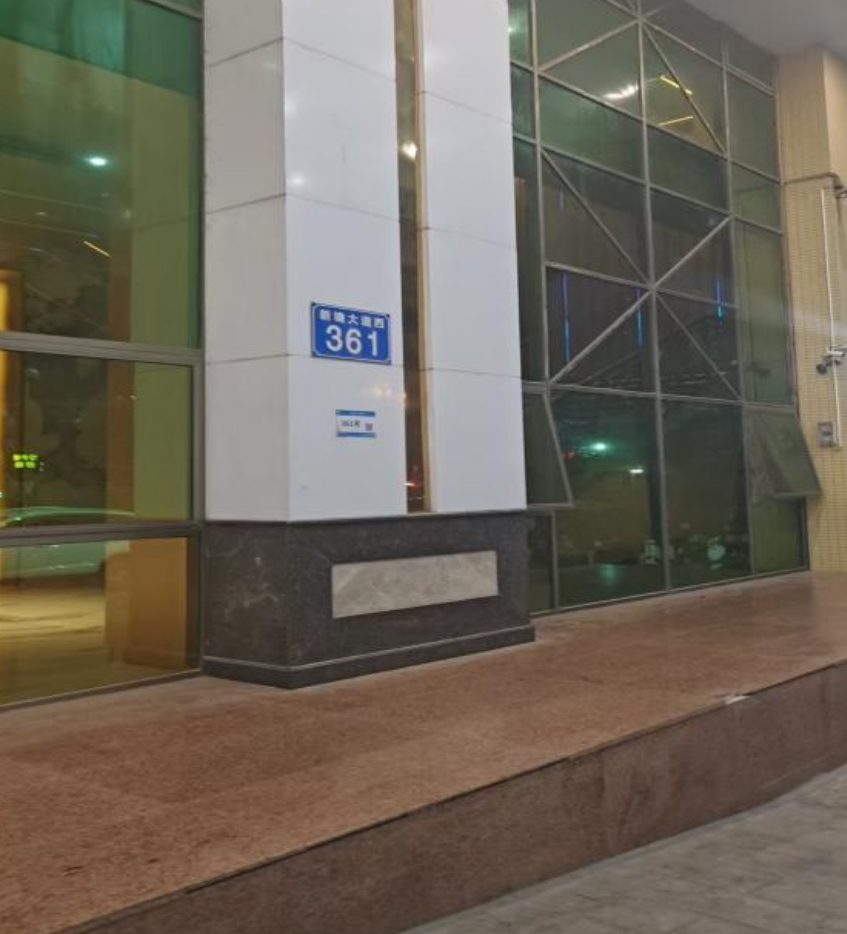 进一步实地核实后研究员发现,该注册地址标注的 “新塘大道西 361 号”,实际对应的建筑是悦顺商务大厦,且即便在悦顺商务大厦的 9 层,也不存在独立的 “8 号” 房间,更无任何属于广州市徽鸿贸易发展有限公司的痕迹。不过值得注意的是,广州市徽鸿贸易发展有限公司法定代表人江厚兵控股 50% 的广州彤宇环保科技有限公司,其历史注册地址曾为 “广州市增城区新塘镇新塘大道西 361 号悦顺商务大厦 9 楼 N08 室”,与徽鸿贸易的注册地址存在明显关联。