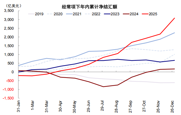 图表8:2025年经常项下银行代客净结汇额达3083亿美元的新高