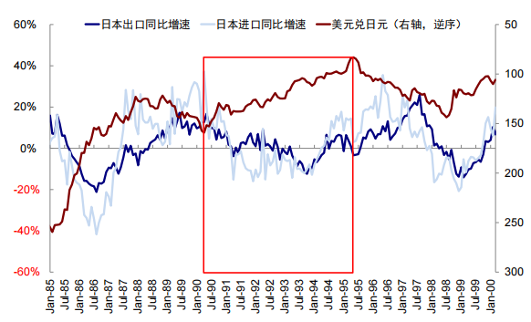图表7:90年代初期日本出口仍有韧性,但进口持续走弱