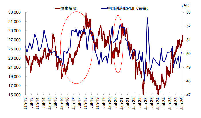 这一情形与中国当前颇为相似。内需冷而外需热的情形仍在继续,今年1-2月外需再度超预期,能源价格在伊朗局势升级前也维持低位,加上国内PPI尚未转正,都使得中国出口成本具备较大竞争优势,与其他市场的出口成本走高形成强烈反差。这一背景下,2025年中国贸易顺差也同样达到创纪录的1.2万亿美元,支撑人民币汇率升值。