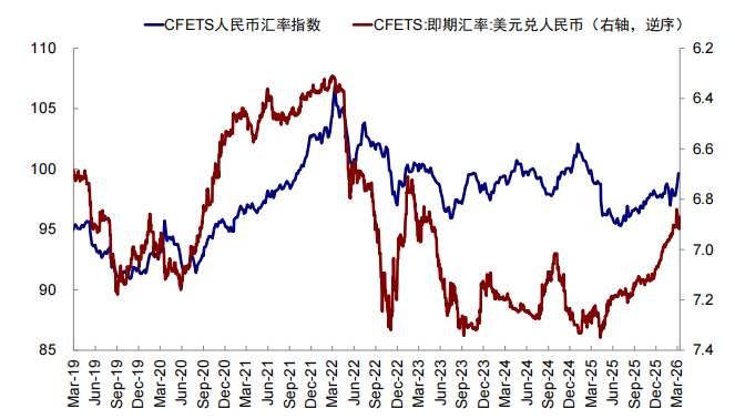 与当时有部分类似的是,受特朗普第二次当选总统后一系列破坏国际秩序和削弱对美元资产信任度的政策(如“对等关税”、格陵兰事件、伊朗冲突等)影响,“去美元化”叙事自2025年4月以来在全球投资者中不断发酵,美元指数从2025年1月110的高点最低降至2026年1月95.7的低点,也成为人民币对美元汇率走强的客观条件。