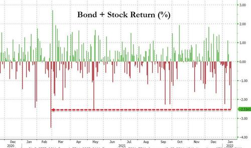 目前,纳指中超过1/3的成分股较52周高点至少下跌了50%,深陷熊市,高估值的科技股承受巨大压力,FAAMNG全明星组合今年均跌超5%。成长股受美债收益率飙升的打压,iShares标普成长股TF(IVW)1月迄今跌超7%。生物科技股遭遇重创,iShares生物科技ETF(IBB)今年跌超12%。非必需消费品不佳,SPDR标普零售ETF(XRT)今年跌超9%。牛市女皇“木头姐”的旗舰基金ARKK、游戏驿站和AMC影院等去年散户抱团股今年均跌价近两成。