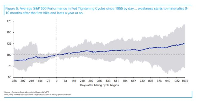 一个多月前曾提到,如果市场预期正确,今年上半年美联储将启动另一个紧缩周期。根据历史经验,美联储在周期内首次加息后,将在两到三年内对经济和金融市场产生影响。