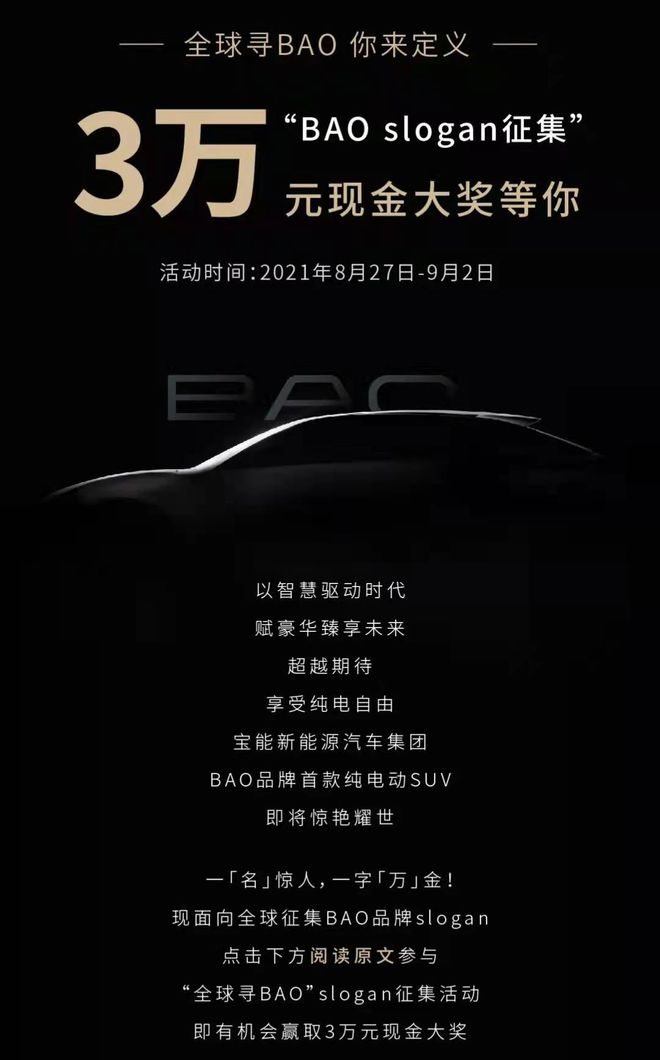 网易汽车1月22日报道 宝能汽车将于今日举行新车品鉴会,届时会发布一款全新车型,通过预告图我们发现,新车或为一台跨界SUV车型。此外,宝能汽车曾经发布了全新汽车品牌“BAO”,并于去年开启BAO品牌slogan的共创活动,关于全新品牌的更多信息也有望在本次品鉴会中公布。【加入车友群,添加官方微信:autolive007】