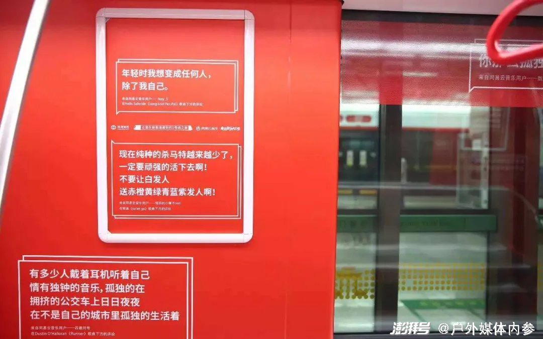 3. 借鉴网易云音乐地铁广告,大红色吸睛;