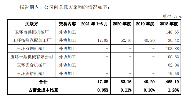 另外,据招股书披露,2018年至2020年,拓山重工的外协加工费分别为4,423.03万元、5,445.67万元9,561.73万元,占主营业务成本的比重分别为12.96%、14.13%、17.22%。然而如此高占比的外协加工费用却并未披露外协厂商总家数,前五名外协厂商的基本情况。