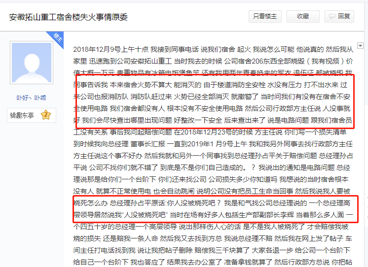 此外留意到拓山重工以及子公司涉多起劳动纠纷其中涉及工伤,而在招股书中声称报告期内,拓山重工及其子公司未发生安全生产事故。但是实际上在2018年12月9号拓山重工宿舍楼层发生火灾,公司宿舍206东西全部烧毁,并且有消防队出警。