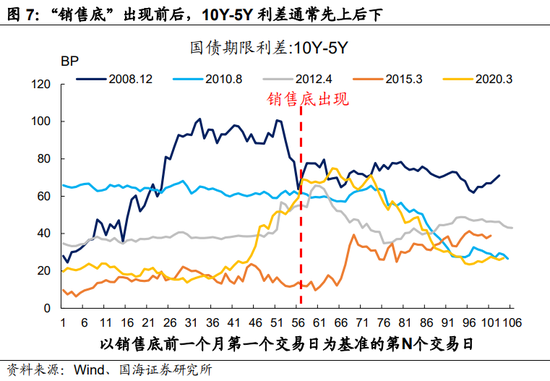 在过往5轮“销售底”行情中,仅有2015年一轮,“销售底”出现后10Y-5Y利率不下反上,主要因为当时货币政策连续、超预期宽松,彻底扭转了债市空头情绪。但根据我们对本轮货币政策的判断,当下此种情况发生的可能性较小。