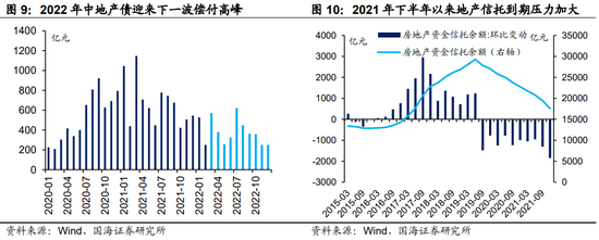 不过就本轮地产回暖行情而言,我们认为地产债还有两个额外的风险点需要关注:一是未来半年,地产信托与地产债资金到期压力依然不小。在“三道红线”融资政策不放松的前提下,销售回暖初期部分房企仍面临较高的信用风险。