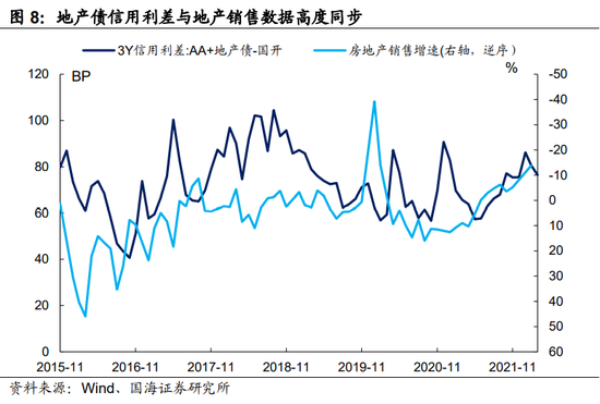 从最直观的角度,地产销售回暖将直接改善房企资产负债表,有利于地产债信用风险的收敛和信用利差的降低。从历史上来看,地产债信用利差对于房地产销售情况高度敏感,地产销售数据的好转通常能在当月、或下一个月传导至地产债市场。