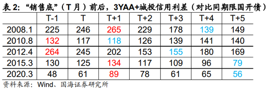 从历史上来看,“销售底”出现的次月(数据公布当月),是参与城投债投资最佳的时间窗口。此后随着销售逐步回暖,城投债利差收敛的行情通常会持续一个季度左右。