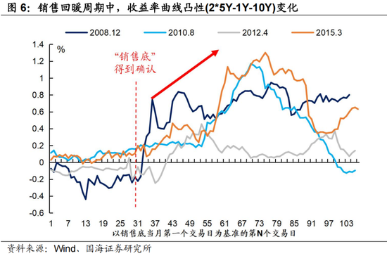 二是在“销售底”公布之前,经济企稳预期已经率先作用于长端利率,“销售底”得到确认之后、靴子落地,利空冲击更多地开始影响中期利率,表现为10Y-5Y利差先走高、后收敛的行情。