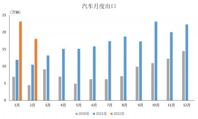 中汽协数据显示,1-2月,汽车出口41.2万辆,同比增长75.0%,其中2月,汽车出口18万辆,同比增长60.8%。(完)