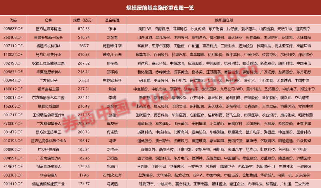 明星基金经理的隐形重仓股有哪些?