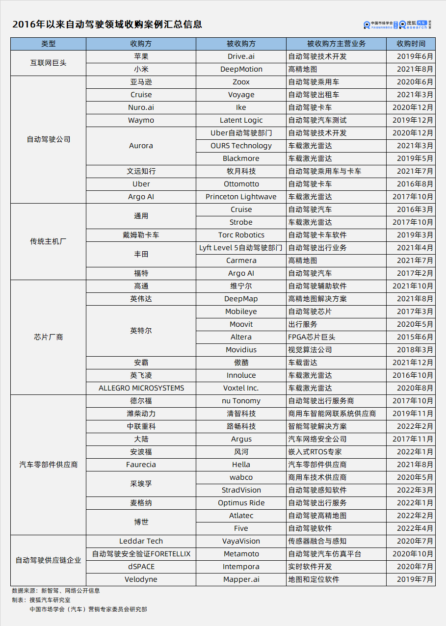 据不完全统计,2016年至今发生在自动驾驶技术领域的企业并购案例达到42例,其中汽车零部件供应商发起的收购为11例,占比超过1/4。同时,发生在2022年至今的案例为6个,占了汽车零部件供应商收购案例的一半多。Tier 1在自动驾驶领域的布局正在加速。