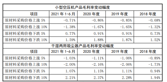 公司出口产品主要销往北美、欧洲等境外市场,其中美国为出口地,2021年 1-6 月公司对美国地区的销售金额为 58,239.86 万元,占主营业务收入比例为 86.00%。2018 年 9 月 24 日起,美国对 2,000 亿美元的中国商品加征10%的进口关税。2019 年 5 月 10 日,美国将 2,000 亿美元中国商品关税从10%上调至25%。公司产品小型空压机和干湿两用吸尘器被列入了上述 2,000 亿美元关税清单。据美贸易代表办公室(USTR)公布的针对中国部分加征关税商品排除清单,公司的小型空压机和小部分干湿两用吸尘器产品于 2018 年9 月24 日至2020年8 月 7 日被排除为关税加征清单范围,并由 2020 年 8 月7 日豁免延长至2020年12 月 31 日。由于公司小型空压机和干湿两用吸尘器排除加征关税有效期已经于2020 年 12 月 31 日到期,截至本招股书出具之日,公司小型空压机和干湿两用吸尘器产品属于 25%加征关税名单。