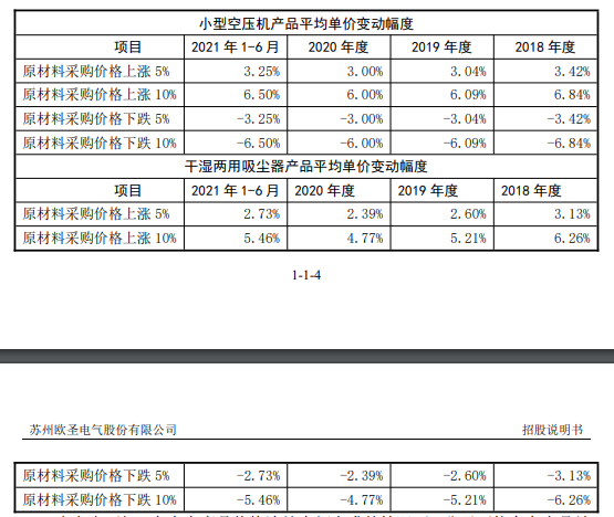 此外,由于原材料价格上涨,公司采用成本加成进行销售定价需要与客户采购时进行商业谈判,可能产品价格变动与材料价格变动在时间点上会存在不一致的情形或产品价格往上调价力度不及预期情况,此时如果假设原材料发生剧烈变化而相关产品价格未能同步变动的最不利情况,则由于大宗商品价格上涨,采购价格变动对发行人毛利率变动的影响如下表所示:
