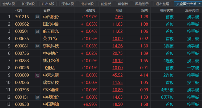 今日(5月27日),三大指数午后回落,截止收盘,上证指数、创业板指录得小幅飘红,深证成指收于微跌。板块方面,教育、油气、汽车等板块涨幅居前,其中,央企国资改革概念今日大爆发,个股掀起涨停潮,板块内近20只个股涨停,其中,钱江水利4连板,东风科技3连板,中成股份8天7板。