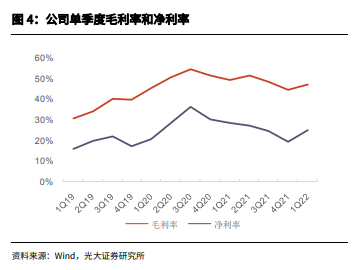 但实际上,石头科技的毛利率在2021年有所下滑,2020年,石头科技智能硬件的毛利率曾超过50%,2021年石头科技毛利率同比下滑3.2个百分点,2021年Q4以及2022年Q1毛利率分别同比下滑6.7和2.1个百分点,2021年毛利率下降主要系会计准则调整(运费自销售费用计入营业成本),此外物料涨价的影响也在2021年下半年逐渐显现。
