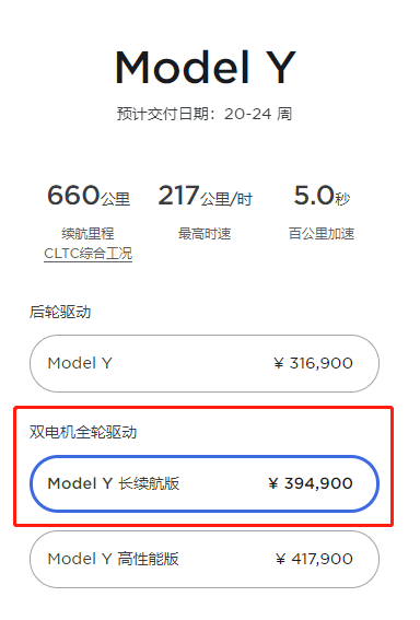 6月17日,特斯拉中国官网显示,国产Model Y长续航版售价从37.59万元上调至39.49万元,涨幅达1.9万元,新车预计交付日期20-24周。Model Y后轮驱动与高性能版车型价格保持不变。
