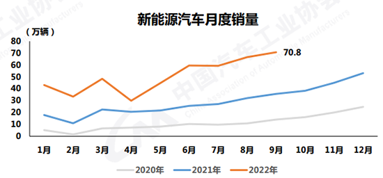 聚焦新能源汽车,9月产销分别完成75.5万辆和70.8万辆,同比分别增长1.1倍和93.9%,市场占有率达到27.1%;1-9月,产销分别完成471.7万辆和456.7万辆,同比分别增长1.2倍和1.1倍,市场占有率达到23.5%。