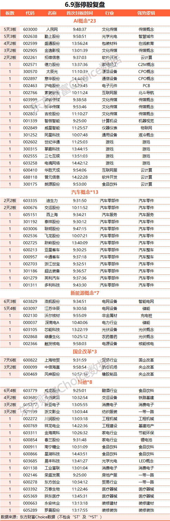 个股方面,上涨股票数量超过2700只。AI概念股再度全线爆发,算力、CPO、液冷方向领涨,太辰光、意华股份、拓维信息、华胜天成、工业富联等涨停;传媒游戏股午后走强,掌趣科技、世纪华通、电魂网络、金逸影视等涨停。汽车产业链个股受利好刺激开盘走强,中通客车、超达装备、英利汽车、浙江世宝等多股涨停。CRO概念股震荡反弹,和元生物涨超10%。下跌方面,基建股陷入调整,蕾奥规划跌超10%,汉嘉设计跌超5%。