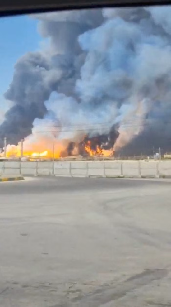 伊朗布什尔省南帕尔斯气田遭袭后浓烟与火光升腾。